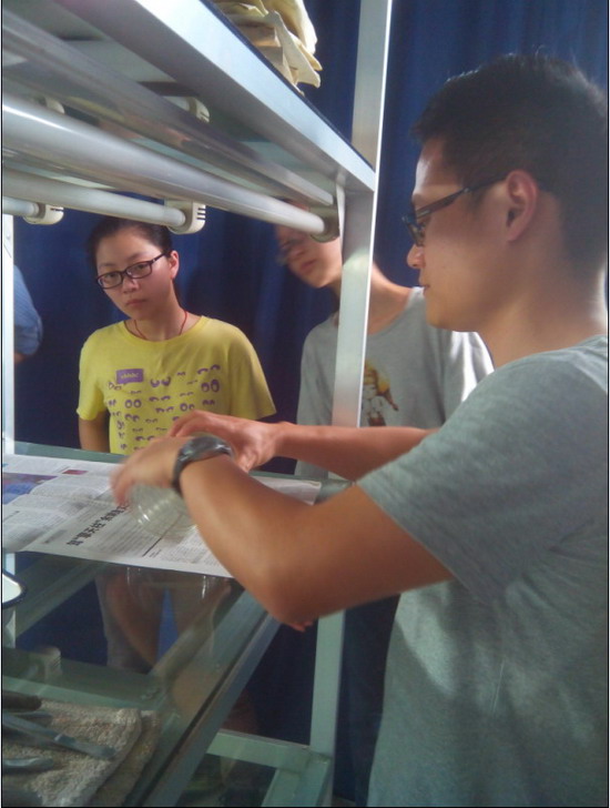生物制药组在老师的带领下认真补充着基础知识,努力提高科学文化知识。大家在教授,博士硕士的带领下学习了培养皿的包扎消毒,以及对拟南芥的种植的保鲜处理,大家都在认真的学习观察以防在以后的试验中出差错。大家感受着科学的严谨,一丝不苟的为着自己小组默默努力。(图为生物制药组在博士的带领下学习消毒和植物保鲜)