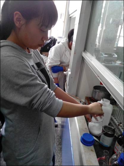 有机化学:实验结论是死板无聊的,但过程却让大家兴奋。大家在神奇的试验中感受着科学探究的魅力,(图为同学们在配置化学溶液)