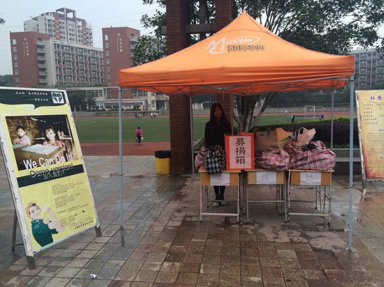 (巴蜀网 王颜樱子)5月26日至6月6日期间,巴蜀中学义工社(重庆学生义工协会)在鲁能巴蜀中学景观大道开展了面向全校师生的“为贫困山区儿童募捐”的公益活动。本次募捐活动总计收到善款近1000元,另有各类衣服、图书、学习用具若干。近期,义工社的社员们将会把所有物品打包,寄送到四川省甘孜州德格县竹庆乡协庆孤儿学校。