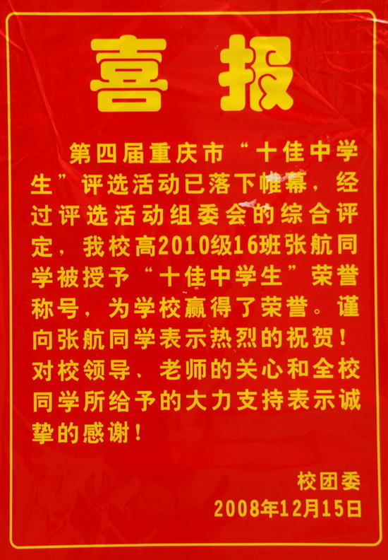 我校3位同学在重庆市“迎奥运,创三星”活动中取得好成绩