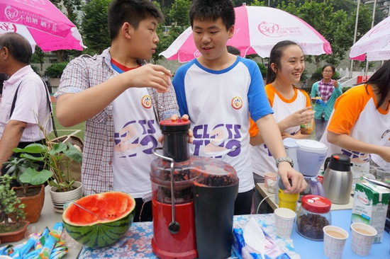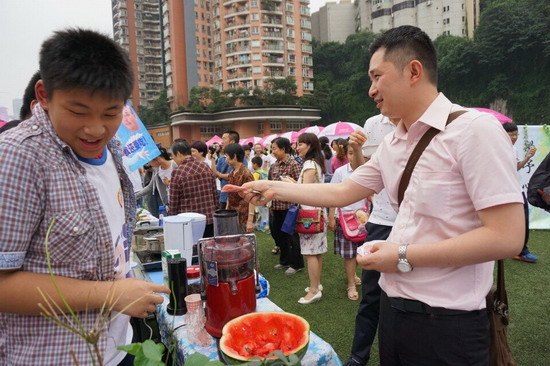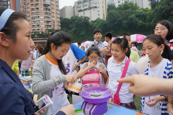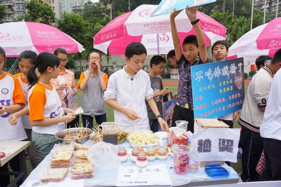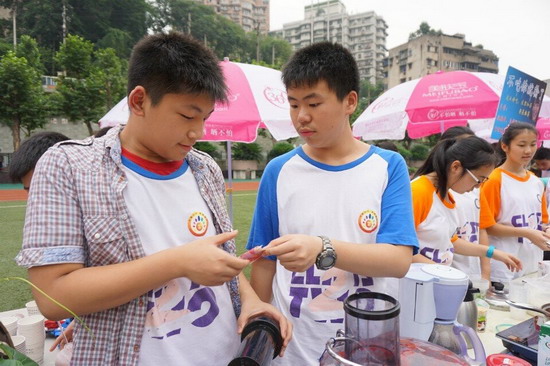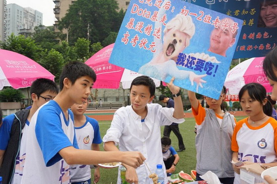 (巴蜀网 姚秀锋)为了培养同学们财商思维,体验创业经历,锻炼合作管理能力、生活实践能力,提升商业意识和理财意识,经过精心的组织策划和细致的前期准备,2014年6月12日下午,巴蜀中学2016级财商教育之“美淘街”活动在学校运动场成功举办。