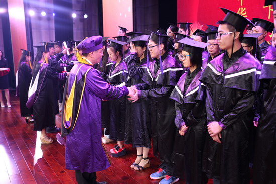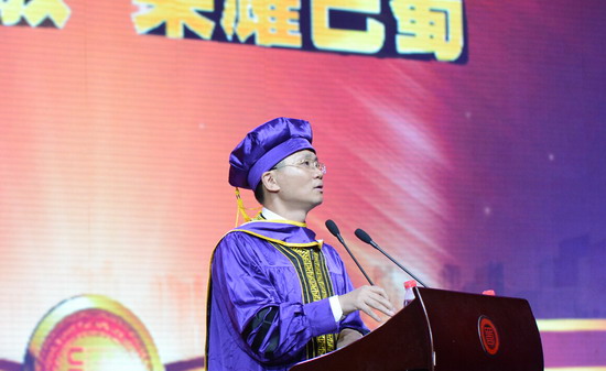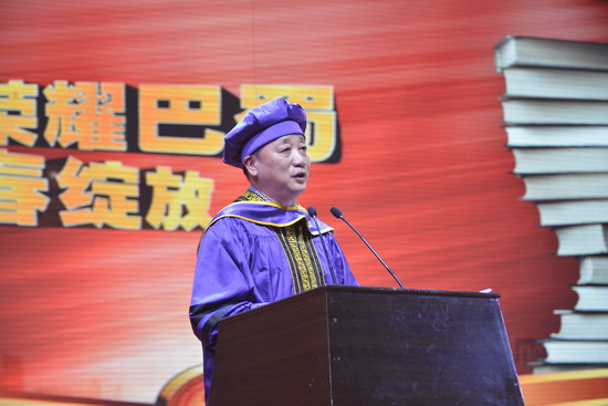 王国华校长致毕业辞,他殷切地向学生们提出了四点希望:一是希望同学们胸怀世界,坚定爱国;二是希望同学们志存高远,踏实奋斗,为社会作出贡献,做到“今天我以巴蜀为荣,明天巴蜀以我为荣”;三是希望同学们要牢记“公正诚朴”校训,锤炼“善为根,雅为骨,志为魂”的品行,成就自己的人生;四是希望同学们在大学要努力学习,在工作岗位要勇于奉献,开拓创新,实现自己的人生价值。