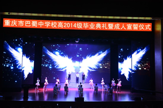 (巴蜀网通讯员 夏文远)为了强化学生成人意识,培养学生社会责任感和历史使命感,2014年7月19日,重庆巴蜀中学高2014级毕业典礼暨成人宣誓仪式在巴蜀中学礼堂举行,我校高三全体学生、高2017级优秀学生及家长共1000多人参加了典礼。巴蜀中学校长王国华,党委书记张勇,副书记吕之生,副校长舒义海、余赢、费春斌、吴国慧,校长助理汪红霞,鲁能巴蜀中学党总支书记付英、校长助理夏义勇出席了典礼。