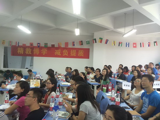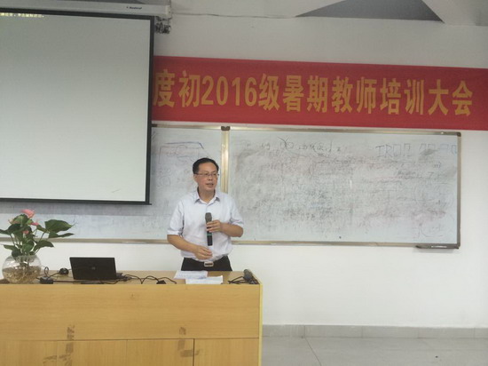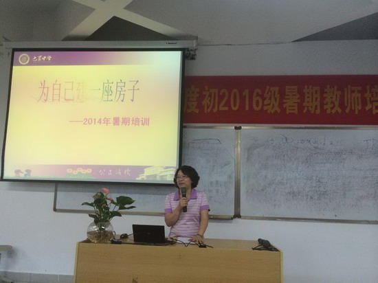8月29日上午8:30,初2016级暑期教师培训大会在鲁能巴蜀中学一教楼隆重召开。会议由年级主任白羽主持。这是本届暑期培训会的重头戏。首先,校长助理汪红霞对新加入初2016级的老师表示热烈的欢迎,对领导小组的分工进行了说明。大会主报告由特级教师、语文教研组长李桂兰老师和全国英语赛课一等奖、英语教研组长周静娟老师主讲。李桂兰老师的主题报告题目为《为自己建一座房子》,李老师就教师中普遍存在的“职业倦怠”问题,提出了自己真知灼见的建议,建议全体教师要注意培养自己对所从事教育职业的新鲜感、幸福感、成就感。周静娟老师的主题报告题目为《教育是一项“爱”的事业》,周老师主要从三个方面诠释了“爱”字,她认为教育是一项“热情”的事业、有“魅力”的事业、“挑战自我”的事业。整个会场时而掌声不断,时而静若银针,老师们情绪高涨,收效甚好。