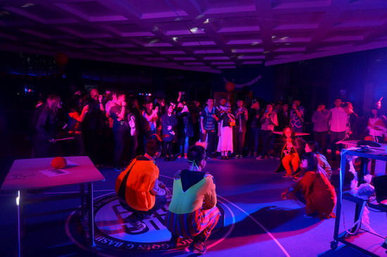 当晚上6:00的钟声响起时,龙湖校区礼堂内引人入胜的英文话剧将在场所有同学带入了节日的惊悚气氛。女巫、幽灵、南瓜灯……一个又一个万圣节元素在同学们脑海里留下了深刻印象。随后,在主持人热烈的号召下,同学们纷纷换上节日服装,变身为“吸血鬼”、“幽灵”、“巫师”等经典万圣角色,并在校区内开展了万圣节探秘、密室逃脱、制作南瓜灯、吹蜡烛比赛等颇具西方特色的娱乐项目,同时还有丰富的食品供大家挑选品尝。最后,晚会在同学们意犹未尽的即兴表演中落下了帷幕。