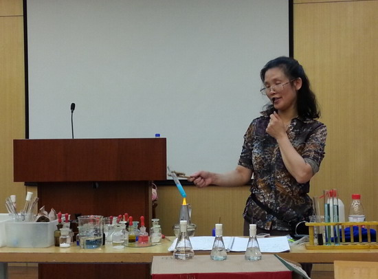 2014年10月26日下午,我校朱华英老师为培训班50名学员做了题为《中学化学实验研究》的专题报告。