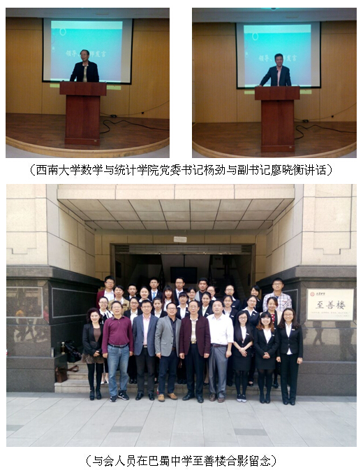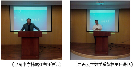 上午10:30,西南大学数学与统计学院巴蜀实习队在巴蜀中学行政楼学术报告厅隆重举行实习中期汇报会。巴蜀中学教务处主任韩武红、教科处副主任周刘波莅临汇报会。
