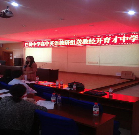 (巴蜀网 李嘉婧)2015年4月29日,我校与经开育才中学高2017级英语教研交流活动在经开育才中学学术报告厅隆重举行。两校共计30余人参与了本次交流活动。