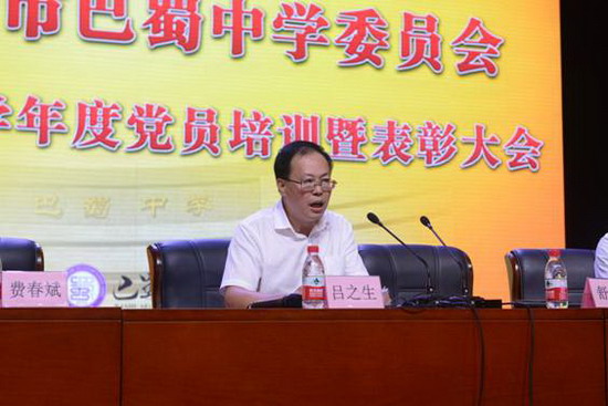 接着,巴蜀中学党委副书记吕之生总结了过去一年党务工作贯彻落实情况,并对新学年学校党务工作做了进一步部署。他表示,在过去的一年,学校毕业年级党支部在关键时期发挥了战斗堡垒作用,取得了学校中高考的辉煌成绩;学校行政党支部在探索中不断创新,尤其是在“重庆巴蜀中学教职工发展激励办法”的制定中发挥了重要作用,为学校的发展贡献了力量。但是,学校现在的发展进入了一个新时期,作为党员领导干部,要加强党性修养,持续改进作风,求真务实创业,适应新常态,凝聚新力量,开创新局面,更好地承担学校发展建设的重要任务。