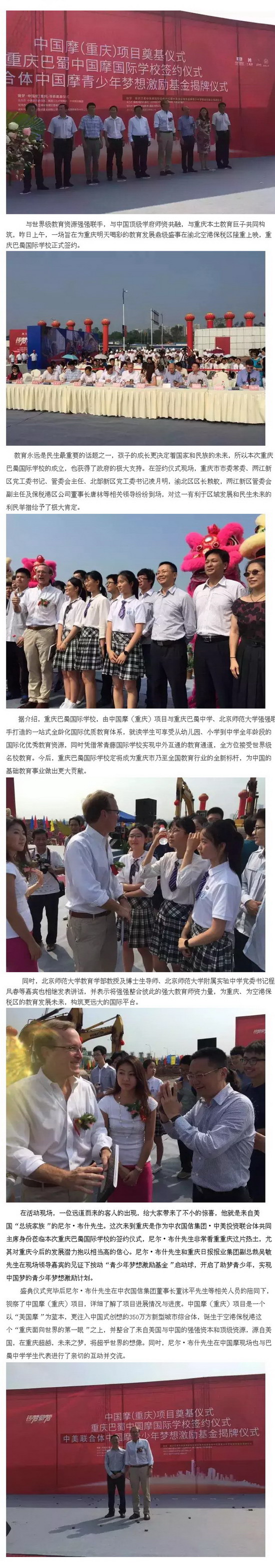 巴蜀国际学校正式签约 小布什出席