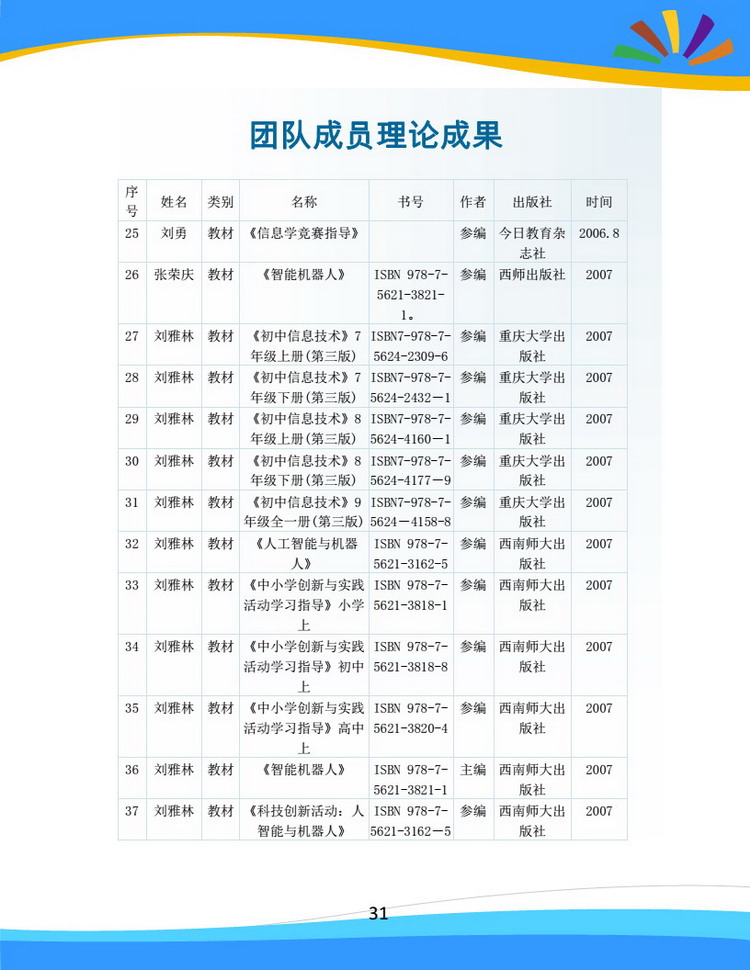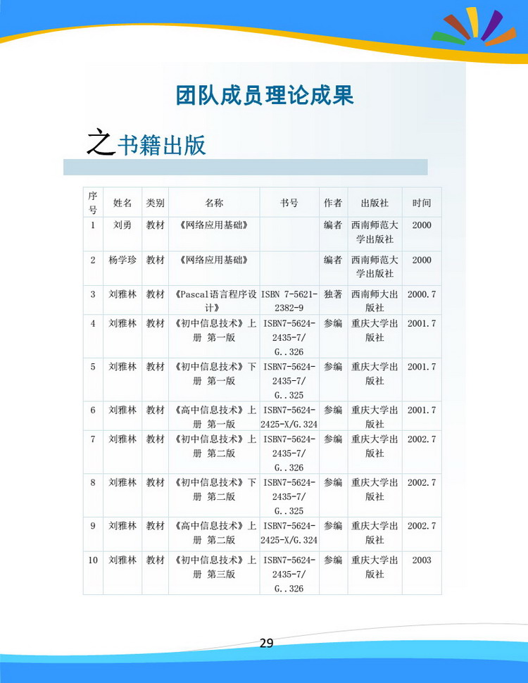 团队成员理论成果之书籍出版