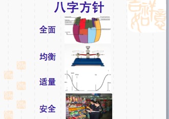 就是强调合理营养的第三个层次,最直观,最简洁的层次,希望大家多关注,张贴在醒目的地方,比如厨房,冰箱上,是解决我们吃什么,吃多少的问题。