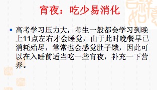 【赵勇老师】关于睡觉前加餐问题,特别是高三高强度的脑力劳动的学生,最好基于了解到孩子在学校的就餐情况,家长就有的放矢的对加餐进行补充,睡觉前加餐适当补充一天摄入食物种类和量上的不足,同时要考虑易于消化的食物。一般采用流质或者半流质的食物,例如牛奶、芝麻糊、玉米糊、稀饭等。当然,量上最好不要太多,也是与前天食物摄入量相呼应。如果加餐会影响到睡眠,建议提前夜宵,在晚自习,课间,以及回家的路上考虑坚果或者宜与携带的方便食品。