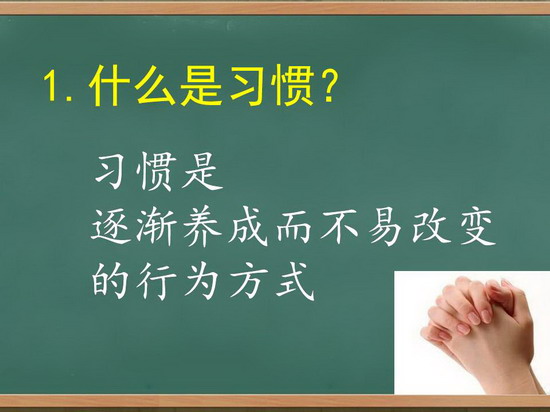 活动从小游戏中开始。全体学生在广播指导下,一起来做十指交叉紧握的游戏,感受习惯的力量。