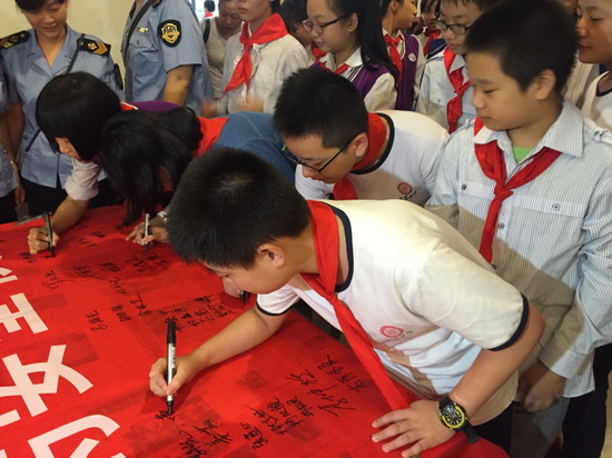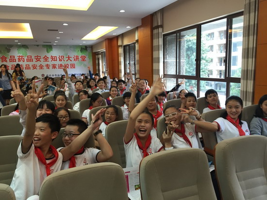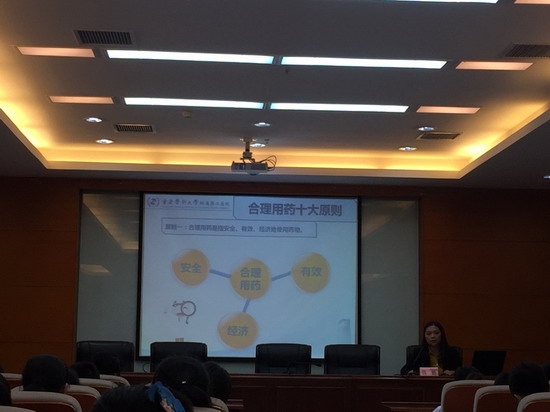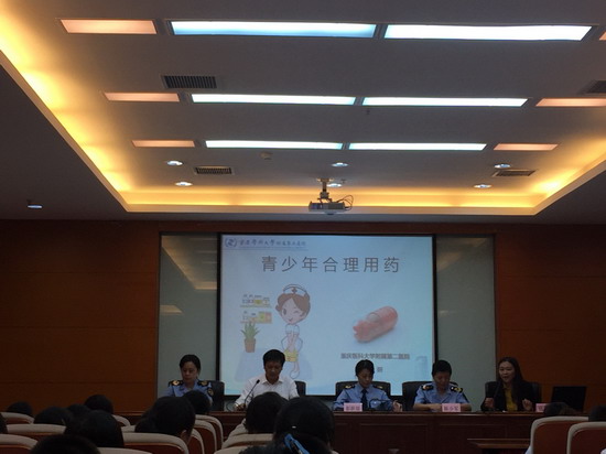 本次讲座是“渝中区食品药品安全知识大讲堂——食品药品安全专家进校园”的系列活动之一。首先,重庆市食品药品监督管理局渝中区分局的彭跃琼局长授予我校“食品药品安全科普宣传站”的标牌,我校汤登健校长助理代表学校接受标牌。接着,食品药品安全科普志愿者钱妍副教授给同学们介绍了青少年合理用药的十大原则,提醒同学们注意输液的危害性,要学会阅读说明书;并结合同学们的实际情况,给同学们普及了合理用药的小常识、如何使用滴眼液、滴鼻液的方法。钱妍副教授谆谆教导,叮嘱同学们把自己学到的用药常识回家向亲人们普及,让科学知识走进家家户户。