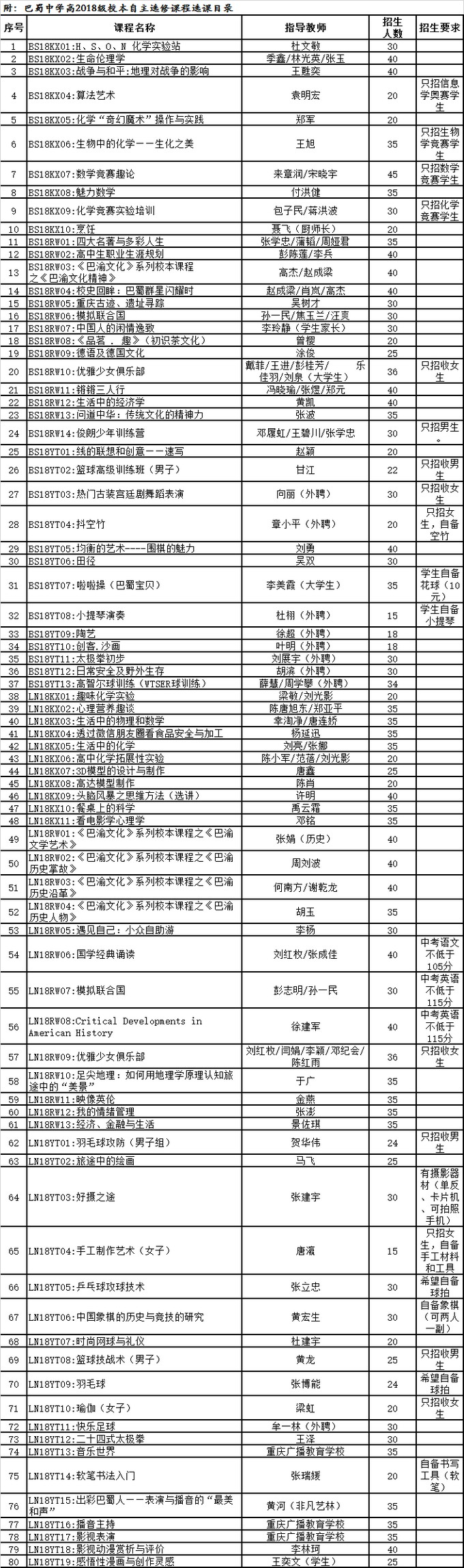 为促进学生个性发展,培养学生兴趣特长,提升时代多元素质,巴蜀中学每一届高一年级都要开设校本自主选修课程。