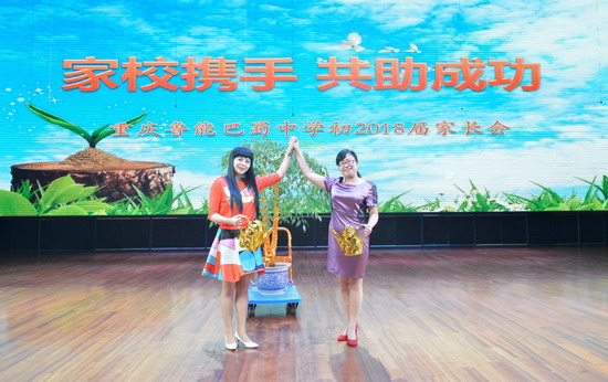 巴蜀的发展,离不开家长们的支持;孩子们的发展,更需要家校心手相牵。大会最后,由吴国慧副校长与家长代表共同上台,携手浇灌代表初2018届的幸福树!期待这一株株稚嫩的幼苗,在家校的共同努力呵护下,茁壮成长,幸福花开!