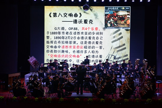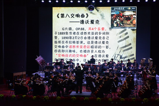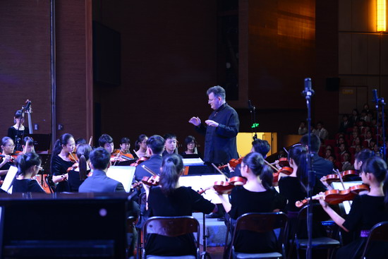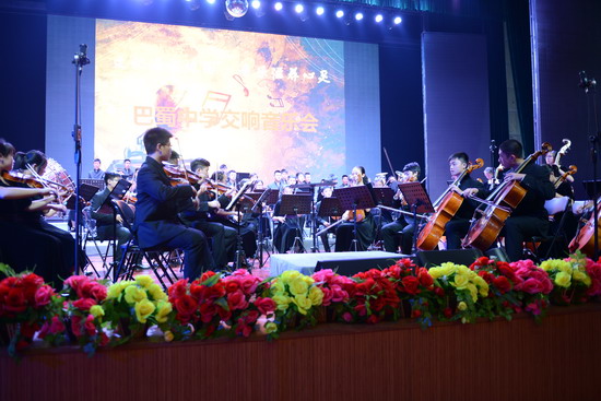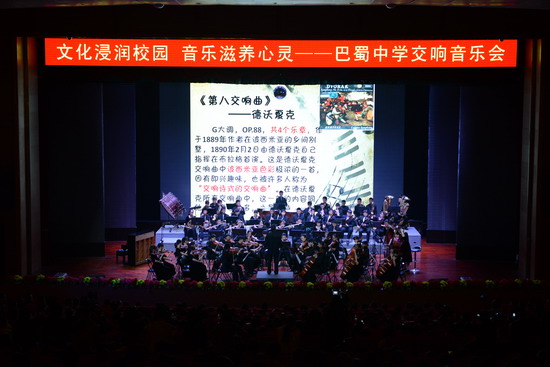 10月11日晚,在巴蜀中学大礼堂,在温情回顾了巴蜀中学交响乐团创立至今八年的艰辛历程之后,Eric大叔亲自执棒指挥“小芭蕉”们演奏了《狂欢节序曲》以及《德沃夏克第八交响曲》,赢得了所有师生的一致好评。交响乐团常任指挥周生宏老师也上台指挥了重庆民歌改编的管弦乐曲《太阳出来喜洋洋》。最后,音乐会在Eric大叔指挥的《卡门序曲》中落幕,音乐会取得了圆满的成功。
