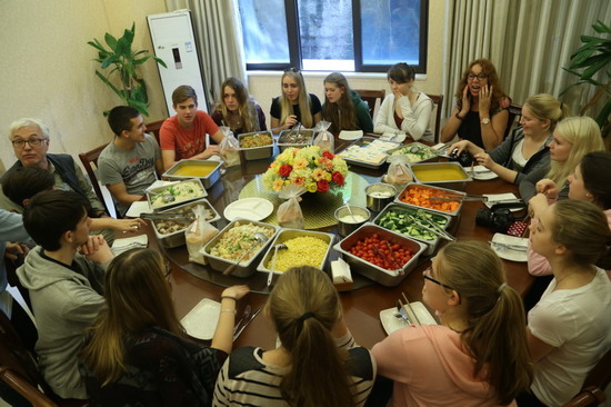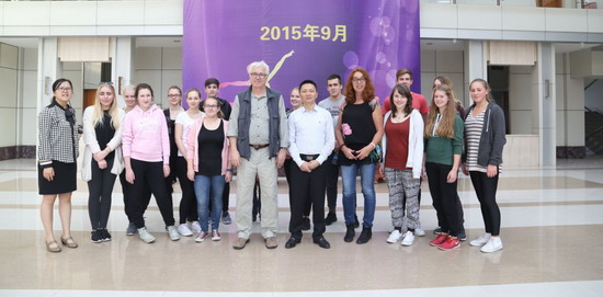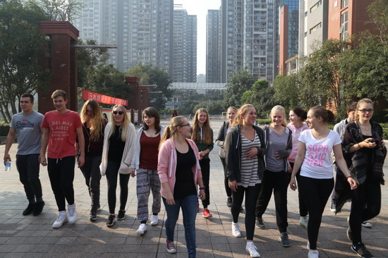 上午8点半,来自德国苏林根高级中学的师生17人到我校鲁能校区和黄花园校区进行了参观和访问。首先,师生们参观了鲁能校区的校园、教学楼、行政区、食堂和礼堂,会见了王校长,并与其亲切交谈。随后,德国苏林根高级中学的师生们来到了我校位于黄花园校区的教工之家稍事休息,然后前往师生食堂享用午餐。食堂的工作人员特地提早为他们准备了适合他们口味的丰盛的午餐:洋葱牛肉、南瓜汤、烤鸡翅……下午,德国苏林根高级中学的师生一行游览了南滨路烟雨公园,并体验了一把长江索道,初步感受了重庆这座山城独有的风采。