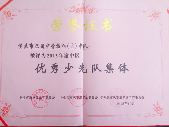 我校初2017级2班荣获2015年渝中区优秀少先队集体!