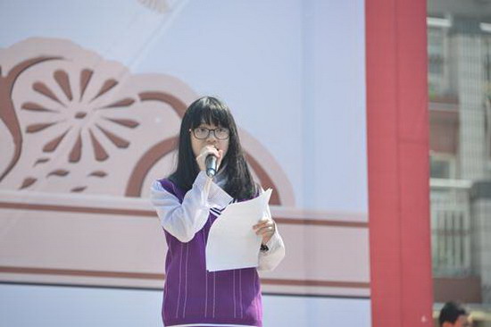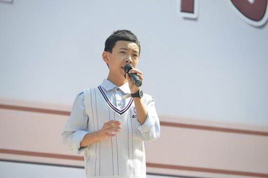 全校同学都在这些动人的故事声中驻足思考,此时初2017级16班的刘唯慎同学以他坚毅的嗓音用一首《蜗牛》让所有的人感动不已——蜗牛月软弱的身躯托着笨重的壳在寻找着自己前进的方向,正如巴蜀的学子顶着重重压力和困难,努力地朝着奋斗的目标。运动场上传来阵阵掌声。