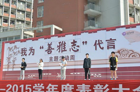 10月21日鲁能巴蜀中学在运动场主席台上继续进行了我为“善雅志”代言主题系列活动第三场——宏志之星专场。