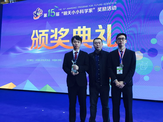 在此谨向“明天小小科学家”称号获得者许登钦同学和银牌获得者苏星宇同学以及他们的主教练张荣庆老师表示祝贺!