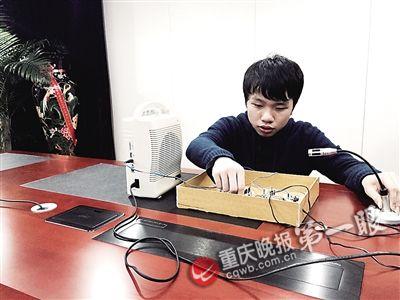 【重庆晚报 记者 蒋海涛 摄影报道】 在KTV唱歌、出席会议,是否受到过话筒发出的啸叫声骚扰?巴蜀中学一名学生可以消除这种声音。