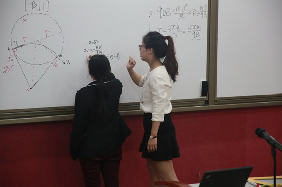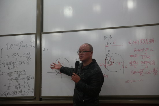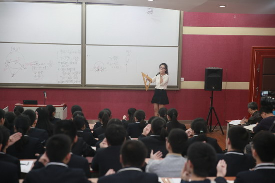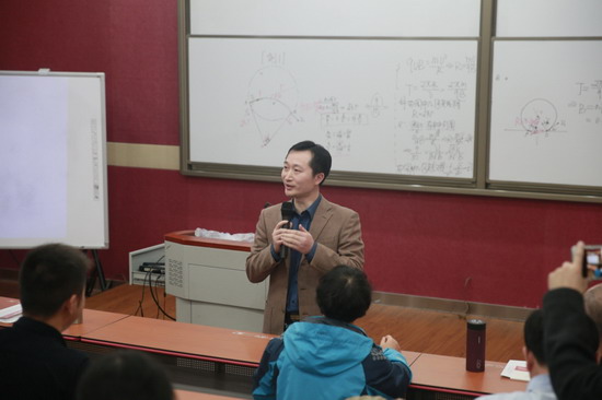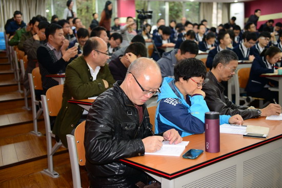 6日上午,周智良所长率名师工作室40名学员来校。在研究员秦德胜主任、物理教研室赵明主任的组织下,学员们在至善楼507学术报告厅先后听了第二节课(8:50-9:30)以及第三节课(9:40-10:20)物理随堂课。第二节课是由高一年级物理组组长高亚浩老师带来的《牛顿第二定律》复习课。课上,高老师衔接式导入,4个问题的抛出,由简到难,总结规律。趁热打铁,把时间交给学生自主练习PPT所示习题,便于落实所学知识,发现问题,解决问题。最后利用习题再次诊断学生学习情况,稳步上升,层层递进。第三节课是由谢东挽老师带来的《带电粒子在有界磁场中的运动》习题课。课上,谢老师充分发挥教师的主导作用,引导学生一步步向真理靠近。习题课上,高老师并不只是追求学生正确答案的得出,更是注重学生思维的培养,学习方法的启迪。