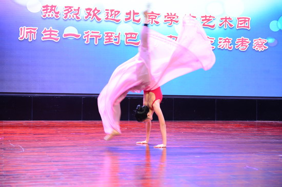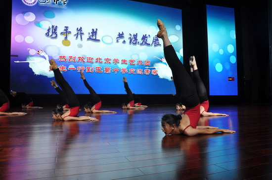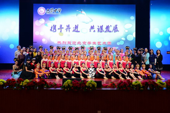 (巴蜀网 戴菲)11月9日下午3点 ,巴蜀至善楼前一群着装整齐、清纯秀丽的美少女引人驻足,这是由北京市教委组织,北京海淀区教委带队的北京金帆学生艺术团的舞蹈孩子们。从校史陈列室到地下运动场,从礼堂交流展示到教工之家座谈交流,师生深入互动,原定的两小时交流时间不觉延至3小时还意犹未尽,依依不舍。