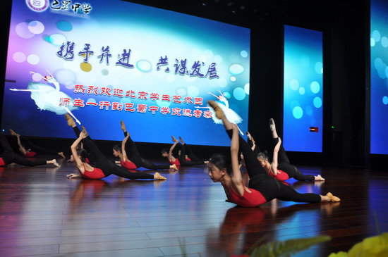 此次巴蜀中学舞蹈团作为重庆中学舞蹈的唯一代表与北京金帆艺术团进行交流学习,参与专项针对学校舞蹈艺术团队建设和教学排练等相关内容交流考察的是北京理工附中和翠微小学舞蹈团师生及相关领导共计55人。金帆艺术团是北京市对艺术教育的翘楚团队给予的最高认定,具有很高的艺术水准。此次交流定在巴蜀也是市教委、市艺教办对我校艺术教育的高度肯定的结果。交流考察的重头戏就是以我校舞蹈团为主的各项展示。交流活动由舞蹈团戴菲老师主持,观看现场展示的有巴蜀中学校长助理汪红霞女士、北京市教委张君老师、北京海淀区教委崔腾军先生和舞蹈教研员史渊萍女士。本部高一年级舞蹈走班课的同学也来到场观摩学习。