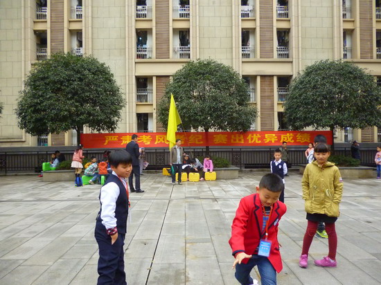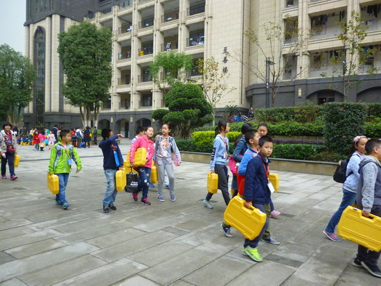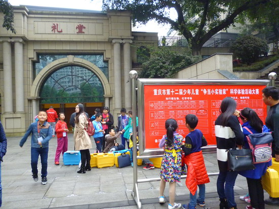 当天上午雨水滋润后的校园益发清新明净,午后冬日阳光给校园涂上暖红色,下午13:00时全市2650名中小学生手提彩色科学实验箱云集巴蜀中学,形成一道道五彩流动的风景线。