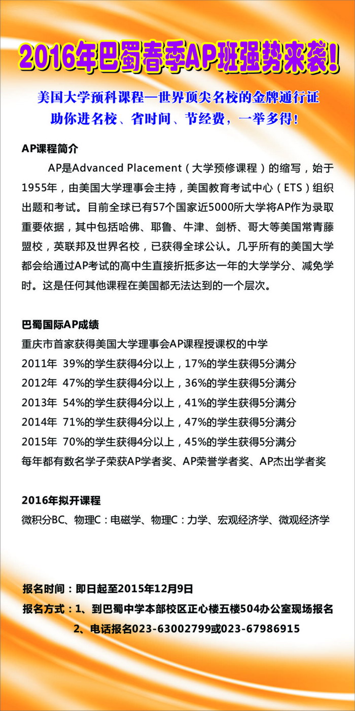 2016巴蜀春季AP班强势来袭