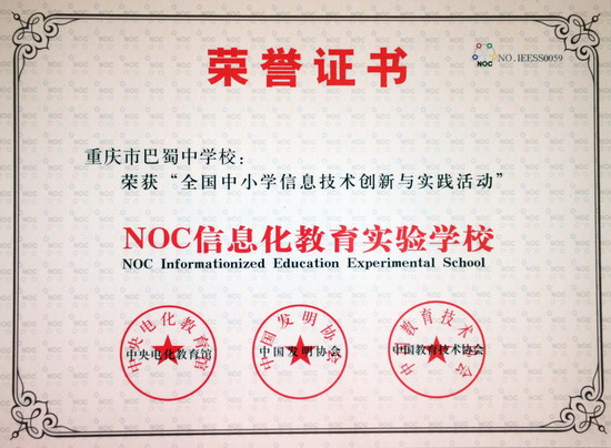 (巴蜀网 赵霞芬)2015年10月,我校被全国中小学信息技术创新与实践活动(简称NOC活动)组委会评选为NOC信息化教育实验学校。