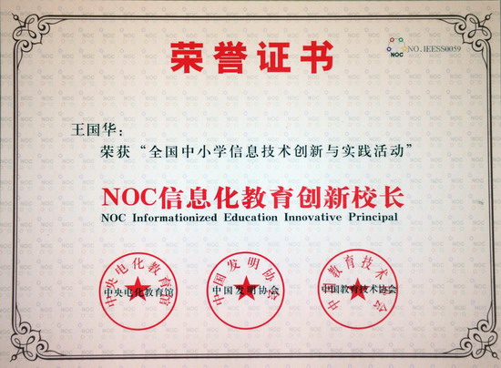 NOC信息化教育实验学校是NOC活动组委会遴选出的信息化教育标杆学校。荣荣获“NOC信息化教育实验学校” 称号的学校,都是在管理创新、教学创新等方面以信息化为特色,深入应用现代信息技术取得了良好实效,并在区域发展中起到了示范和辐射作用。