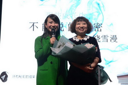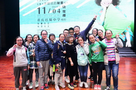 (巴蜀网 马晶晶)11月4日下午3点,著名青春文学作家饶雪漫女士莅临巴蜀中学,在巴蜀礼堂为高2019届的全体学生展开了一次主题为“那些成长中不能说的秘密”的讲座。作为畅销作家的饶雪漫,她的许多作品深受中学生的喜爱,她的到来也激起了学生们的热情。饶雪漫以亲切而幽默的语言,生动而真实的故事为身处青春期的高一学子分享了许多成长的经验,以自己的成长经历和教育方式指导青春期的学生该如何处理与父母之间的矛盾,与朋友之间的关系以及青春期的小烦恼等等。睿智的语言和动人的故事直抵每一个学生的内心。与其说是分享秘密,不如说是指点迷津。