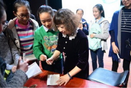 最后的提问环节,全场同学激情澎湃,积极举手与作家进行交流,饶雪漫也以机智而深刻的回答获得了全场一次又一次的掌声,在所有同学的盛情挽留下,饶雪漫还特意增加了提问的机会,并夸奖巴蜀中学钟灵毓秀,培养出的学生素养很高。最后,饶雪漫热情地和全场同学合影并赠送了自己的签名书籍给所有提问的同学。