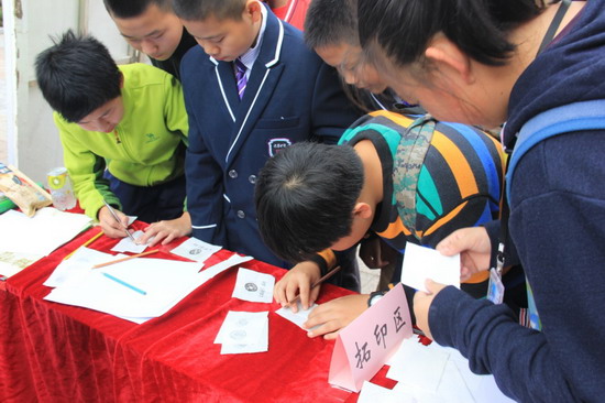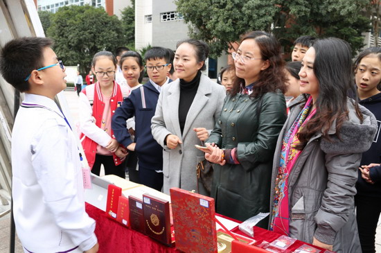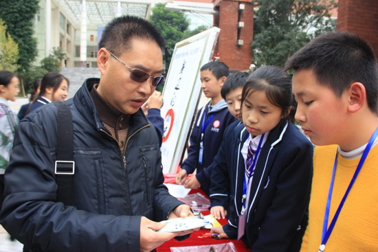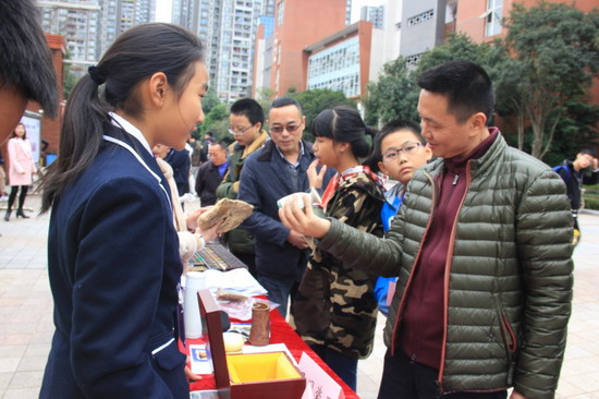 在现场,孩子们为参观的同学和来宾们热情的介绍自己带来的展品。巴蜀中学校长王国华先生也从百忙之中来到现场,兴致勃勃地向孩子们询问起展品的来历,与孩子们展开了亲切的互动。