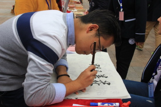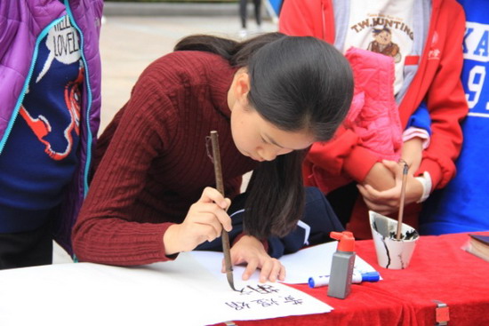 参观结束后,同学们还兴奋地拿起毛笔留下了自己的墨宝!