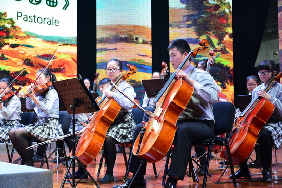 即将9岁的“小芭蕉”作为最后一支参演队伍压轴出场,我校音乐老师李加一首次担任乐团指挥,完美演绎法国作曲家比才的经典作品《阿莱城的姑娘第二组曲》中的《牧歌》和《法兰朵拉舞曲》。“小芭蕉”刚刚经历了一次“大换血”,许多曾经随队征战全国五艺展的老队员已经离队。但是,铁打的营盘流水的兵,新生“小芭蕉”以全新的面貌在此次重庆市展演中大放异彩,又以长足的进步征服了所有的观众以及评委老师,新生代“小芭蕉”将继续砥砺志行,站在振兴西部青少年交响的高度,争取更上一层楼 !