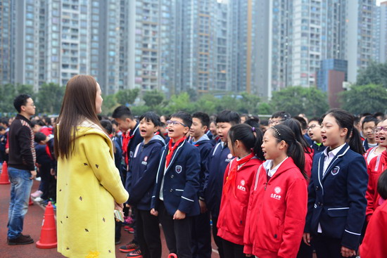 最后,现场的班主任们都站到了队伍的最前排,同学们齐声道了一句“老师好”,老师们也微笑着回应“同学们好”,每个人的脸上都洋溢着幸福的笑容。