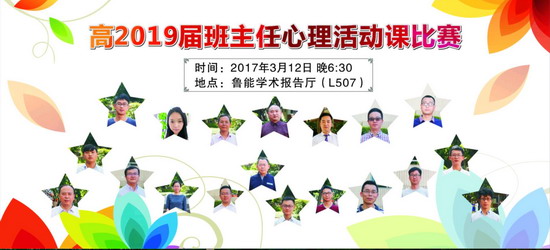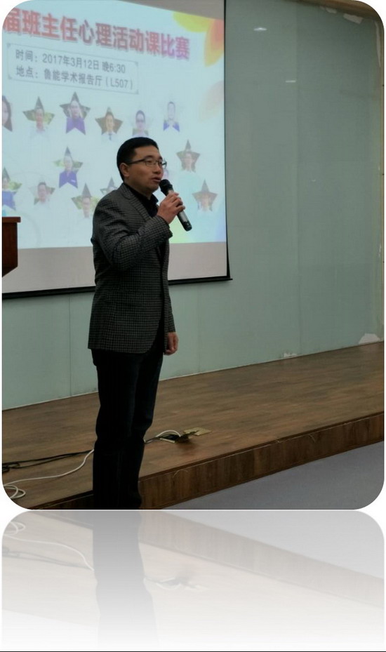(巴蜀网 刘欣 余照)为了贯彻落实教育部《中小学心理健康教育指导纲要》和《重庆市中小学心理健康教育实施意见》,推动学生核心素养发展的校本化课程建设,3月12日晚6:30,高2019届在鲁能学术报告厅L507举办了班主任心理活动课说课比赛。巴蜀中学副校长刘雅林、学生处副主任李君昌以及年级所有班主任参加了本次活动。担任比赛评委的有校学生处副主任尹东阳、鲁能巴蜀校团委副书记严吉林,巴蜀常春藤国际学校学生事务长李竹,比赛由年级主任李清友主持。