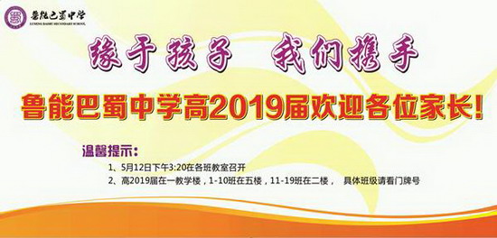 (巴蜀网 李清友 余照)为了加强家长与学校的联系,增进家长对学校工作的了解,促进家长与老师之间的交流,通过家校合作,架起家校沟通的桥梁,达到家校携手共同培养学生的目标,高2019届经过研究决定,于5月12日下午统一召开了家长会。