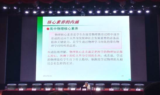 首先,唐果南老师做了“物理学科核心素养粗析”的报告,从为什么要提出核心素养、物理的核心素养是什么以及怎样提高物理核心素养这三方面阐述了物理教学中注重物理核心素养的必要性。