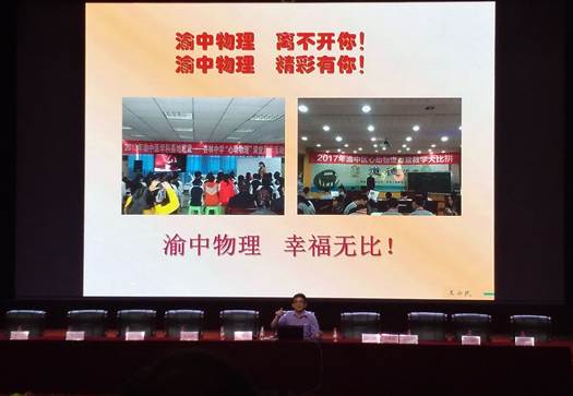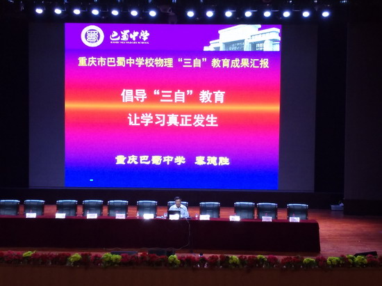 接着,渝中区名师工作室主持人秦德胜,通过鲜活的教学案例为我们展示了如何让物理核心素养指导我们教育、教学,并汇报了重庆市巴蜀中学校物理“三自”教育成果,提出倡导“三自”教育,让学习真正发生。