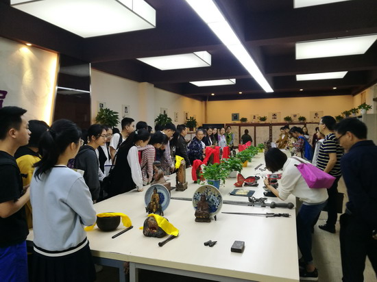 因此,我们邀请重庆市知名民间收藏专家祝金国先生带着他收藏的道教文化、婚俗文化展品约50余件藏品来到巴蜀中学展出。和祝先生同期展出的还有巴蜀中学高2019届学生展出的他们收集的部分藏品。展出期间,祝先生为老师们和同学们介绍了藏品背后的故事,同学们也分别展示了他们对藏品的历史解读。