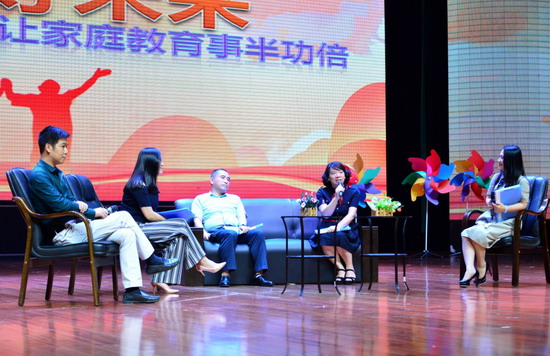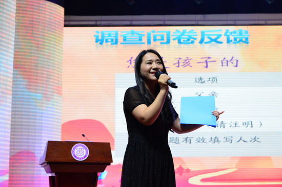 接下来由学生处副主任万宇主持了大会的教育篇“嘉宾有约”,邀请了学生处李君昌主任,重庆市德育名师李桂兰老师,初二10班程澜的妈妈,初二14班邹吴极的爸爸,以特别的现场访谈的形式,畅谈了“如何处理亲子关系”这个初二的家长们最关心最头疼的话题,两位家长以自己对子女的几段教育个案献身说法,李桂兰老师从德育专家的角度传授了处理方法,长期在高中从事德育管理的李君昌主任给出了提醒和建议,几个嘉宾走心的话语直扣主题----好的亲子关系让家庭教育事半功倍.之后万宇主任和四位嘉宾一起用一首改编自纪伯伦的小诗《致我们终将远离的孩子》将家长会推向高潮。